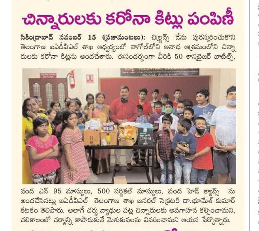 Donated 100 sanitizer bottles and 100 N95 masks,500 surgical masks and distributed medicines at children orphanage home on 14th November 2021 (Donor Dr.Bhumesh)