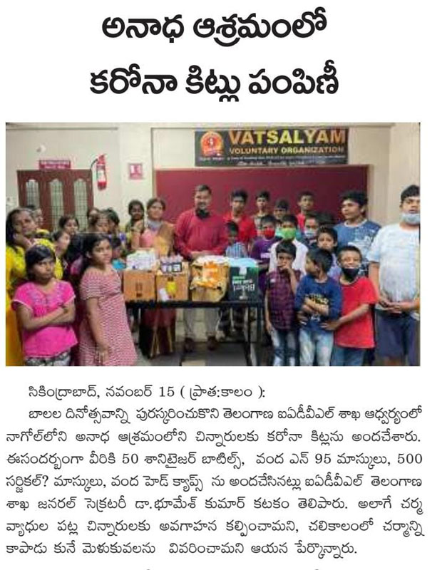 Created awareness on covid19 and pediatric skin health at children orphanage home on 14th November 2021