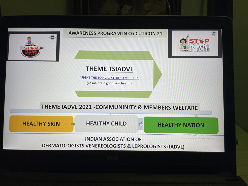 By admin|2022-01-18T01:20:22+00:00September 5, 2021|Awareness Activities|Comments Off on created awareness on misuse of topical steroids – theme iadvlts in CUTICON CG 21 CONFERENCEon 05-09-2021