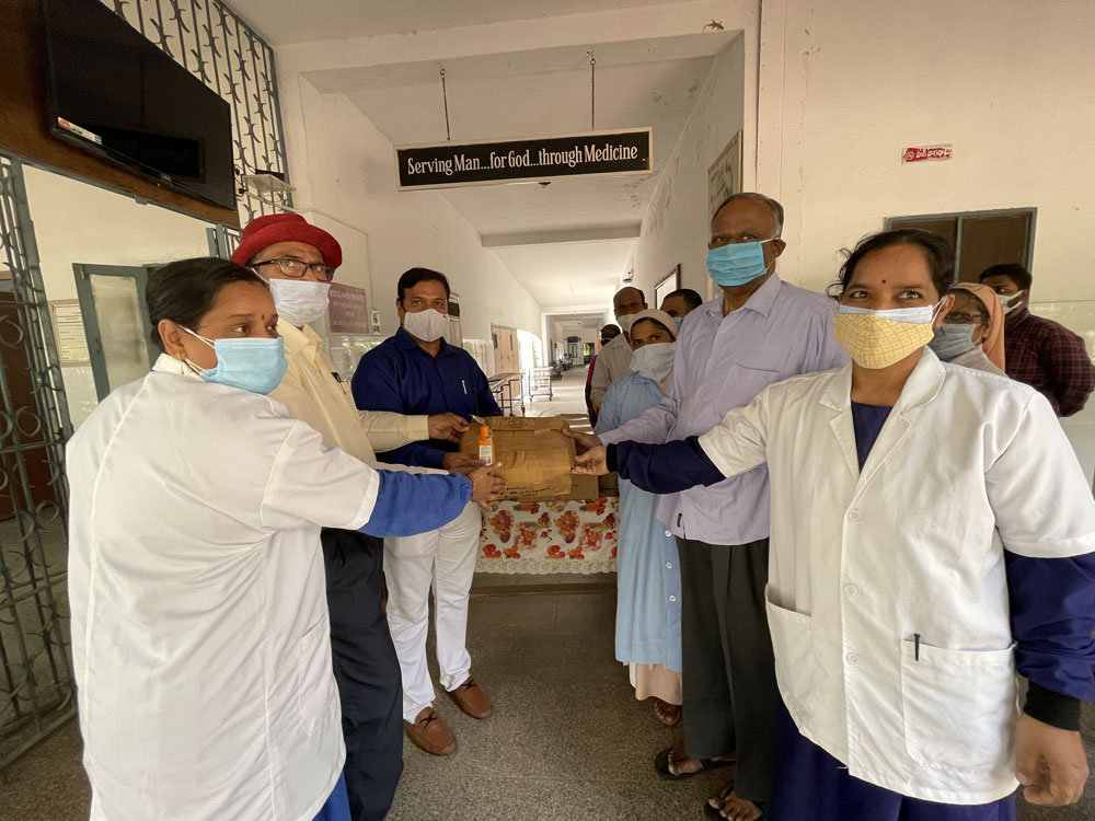 By admin|2022-01-18T18:29:35+00:00October 5, 2021|COVID 19 Activities|Comments Off on donated 02 pulseoximeters ,250 N95 masks, 800Surgical masks, 500 head caps,100 face shields; 50 sanitizer bottles,100 surgical gloves to Shivananda Leprosy centre hyd on 5-10-21(bhumesh)