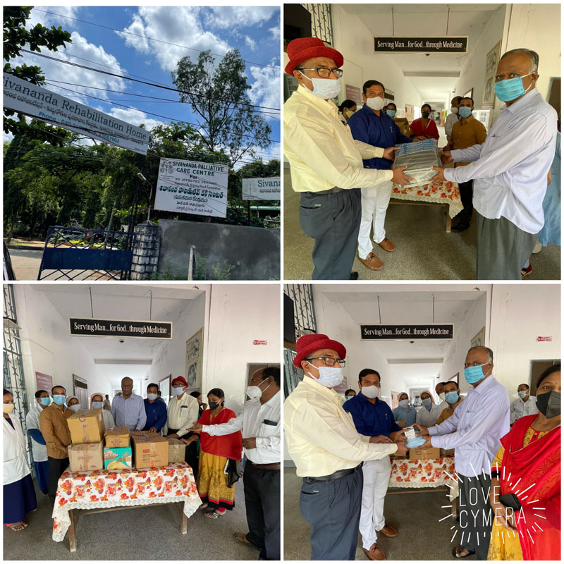donated 02 pulseoximeters ,250 N95 masks, 800Surgical masks, 500 head caps,100 face shields; 50 sanitizer bottles,100 surgical gloves to Shivananda Leprosy centre hyd on 5-10-21(bhumesh)