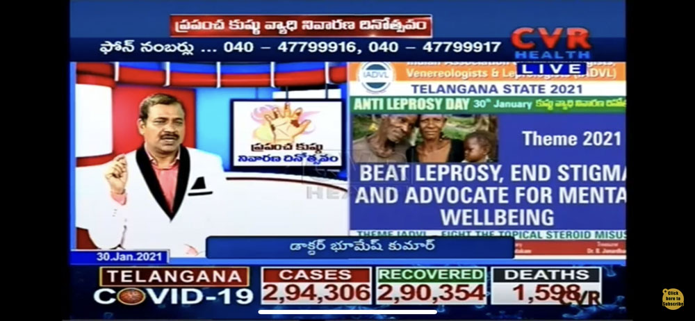 Home/Awareness Activities/Live Program on ANTI LEPROSY DAY and created awareness on the myths and facts of leprosy in CVR HEALTH CHANEL ON 30-1-2021