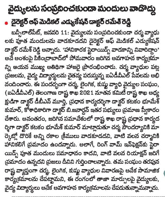 THEME IADVL Awareness in IADVL TS INSTALLATION CEREMONY with DME and Members ON 10-01-2021